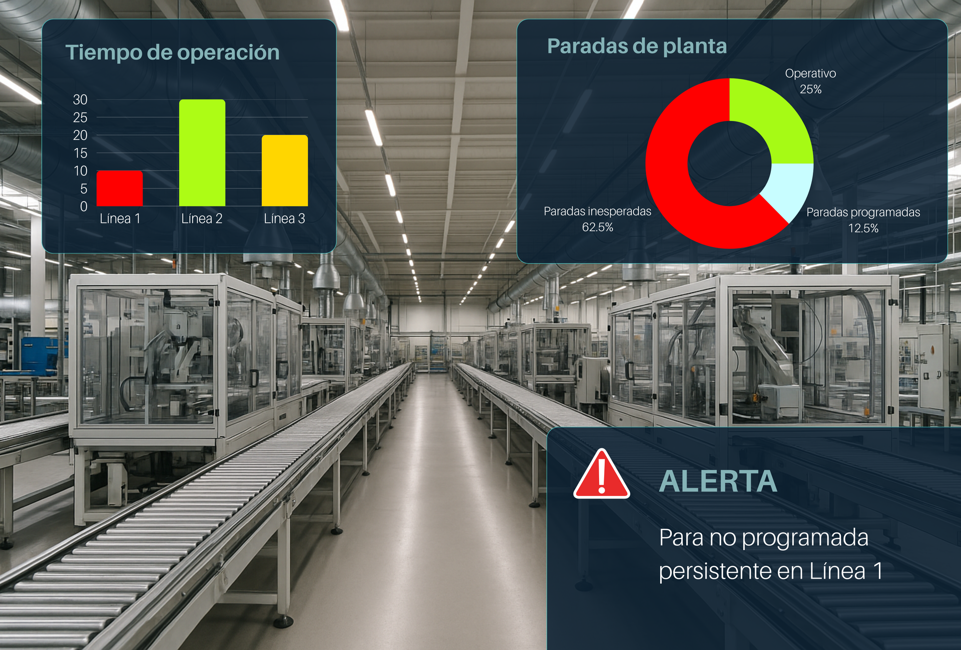 - Alertas remotas ante paradas no programadas