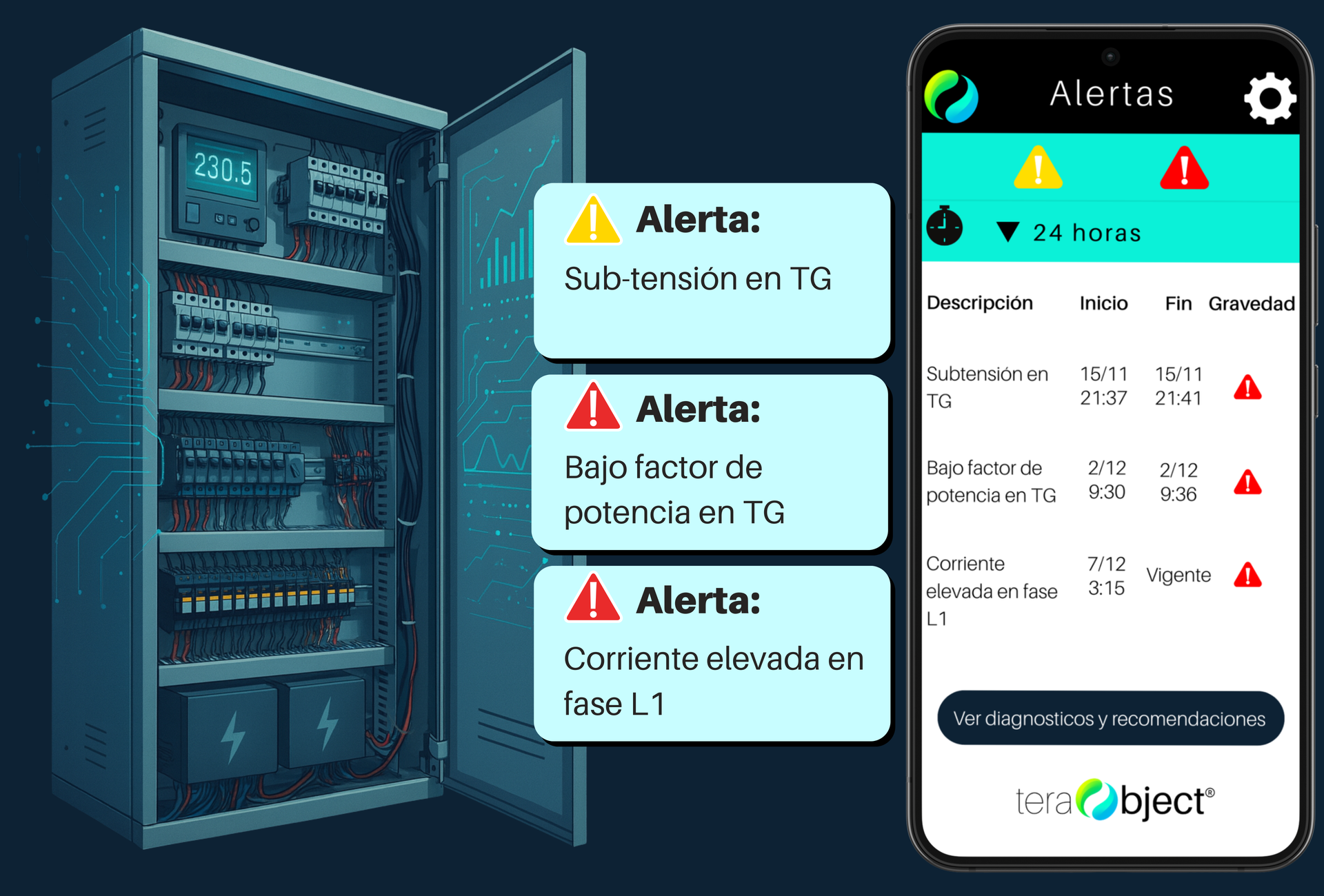 Los datos permiten monitorear en tiempo real la calidad y comportamiento de la energía eléctrica y prevenir daños en equipos por: